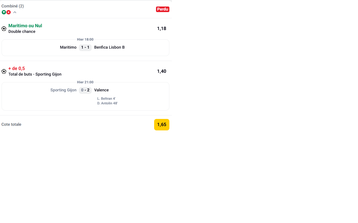 ✅ 1 pari SAFE sur 2 validé