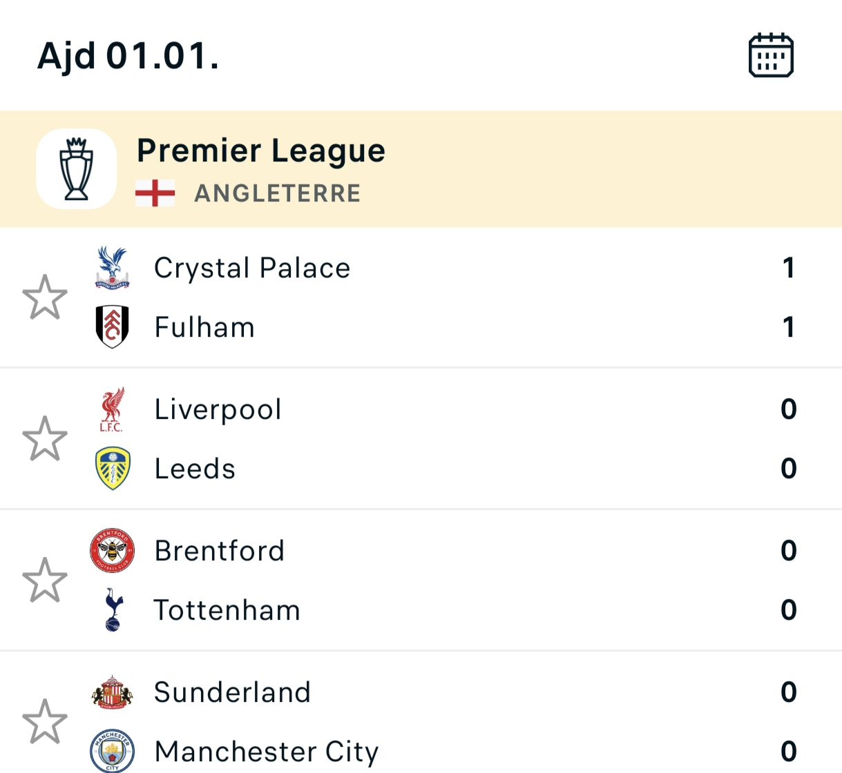 Première League, malheureusement les 0-0 sont rares mais bien présent. Difficile à prévoir avec de grosses écuries...
