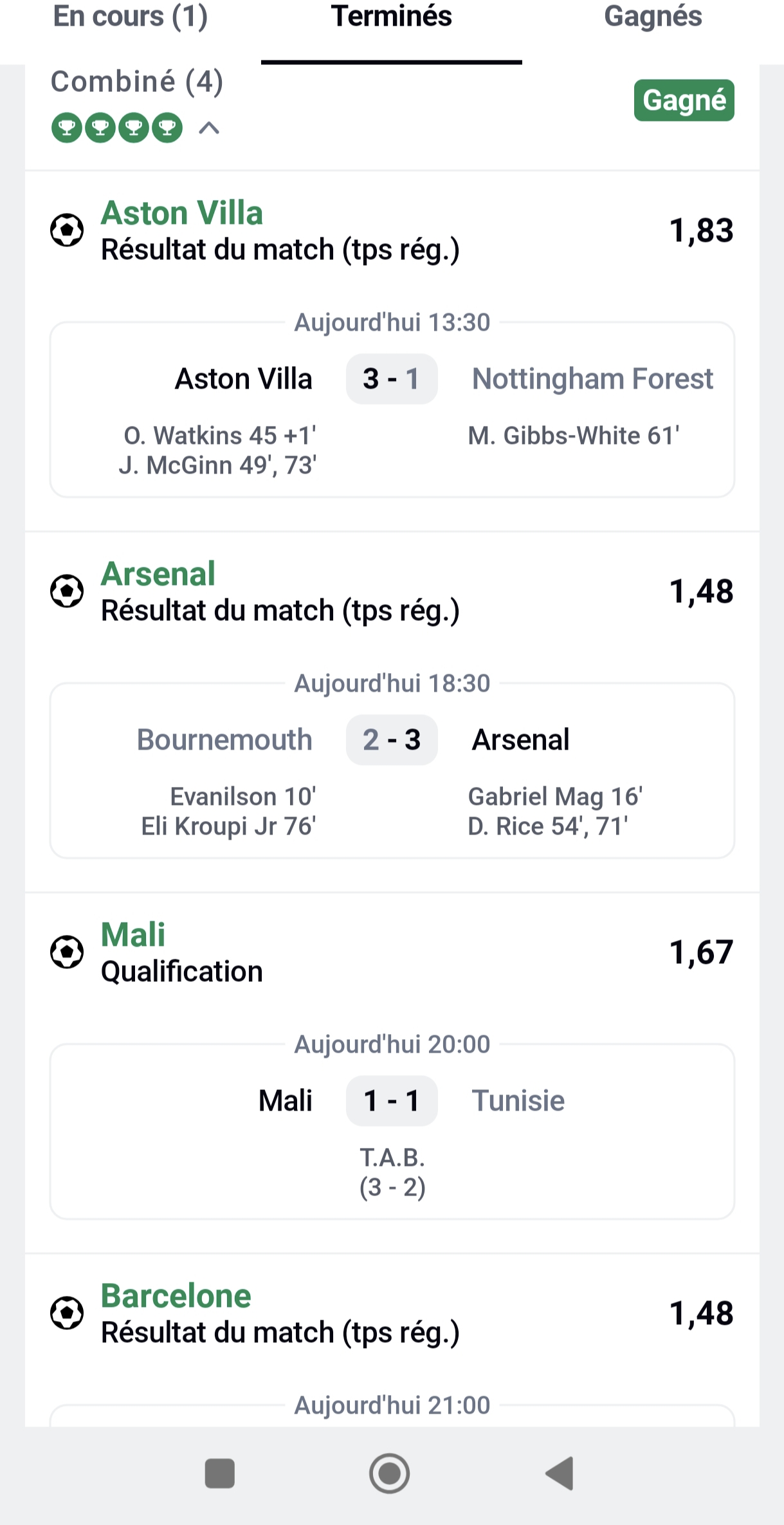 Historique public des résultats Bet Help.